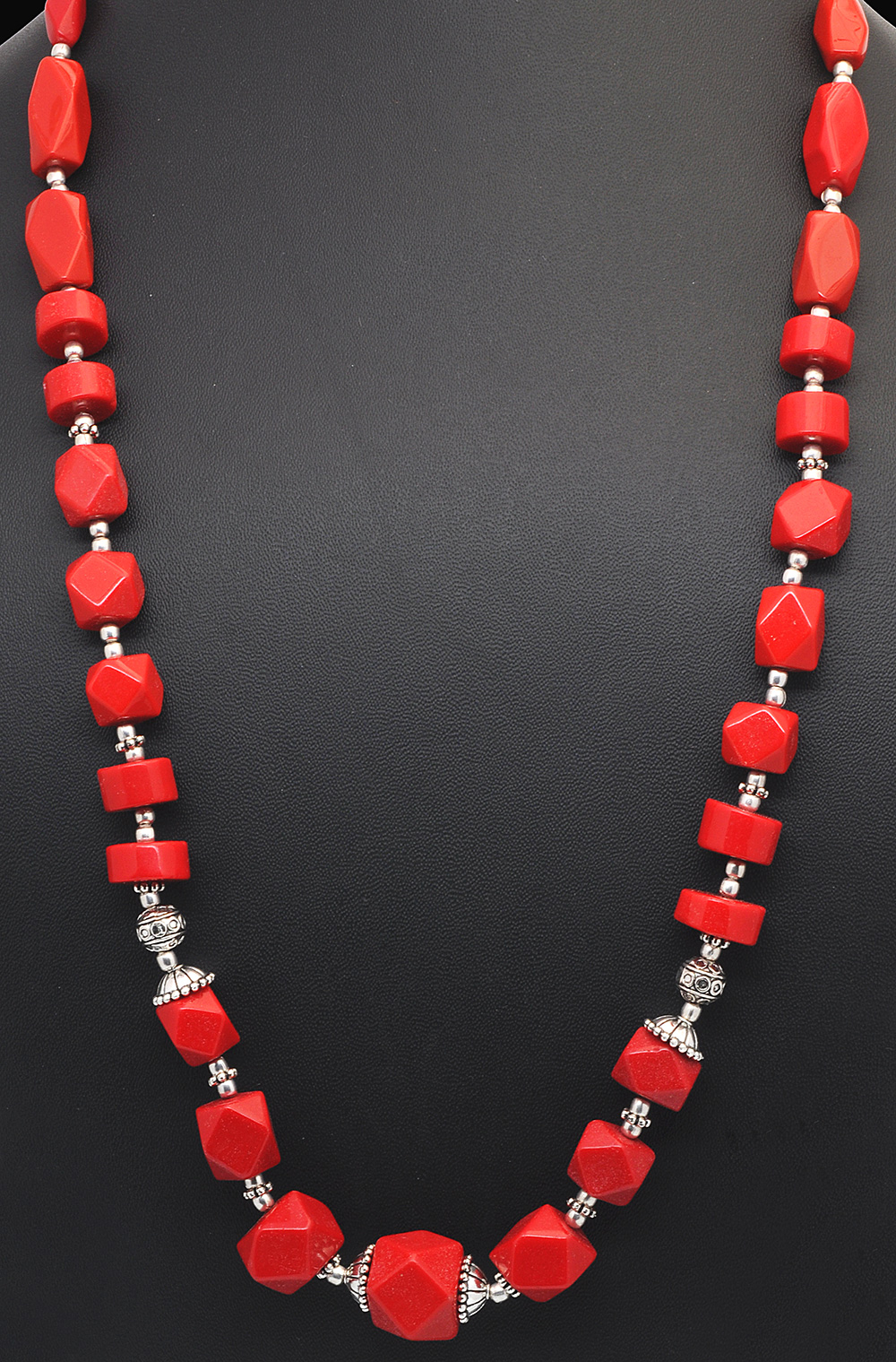 Moonga faceted gemstone studded necklace & earring set WITH OXIDIZED RHODIUM POLISH