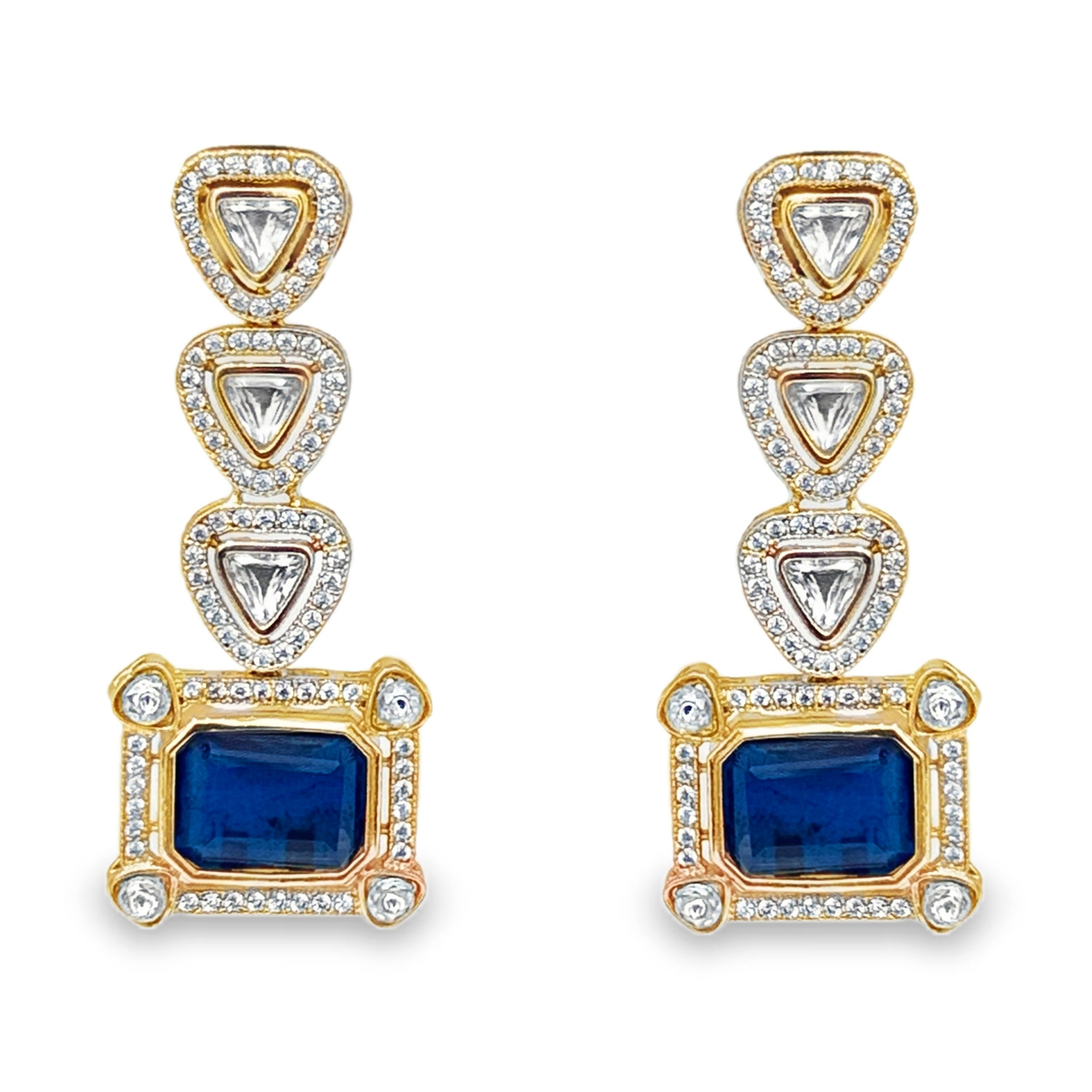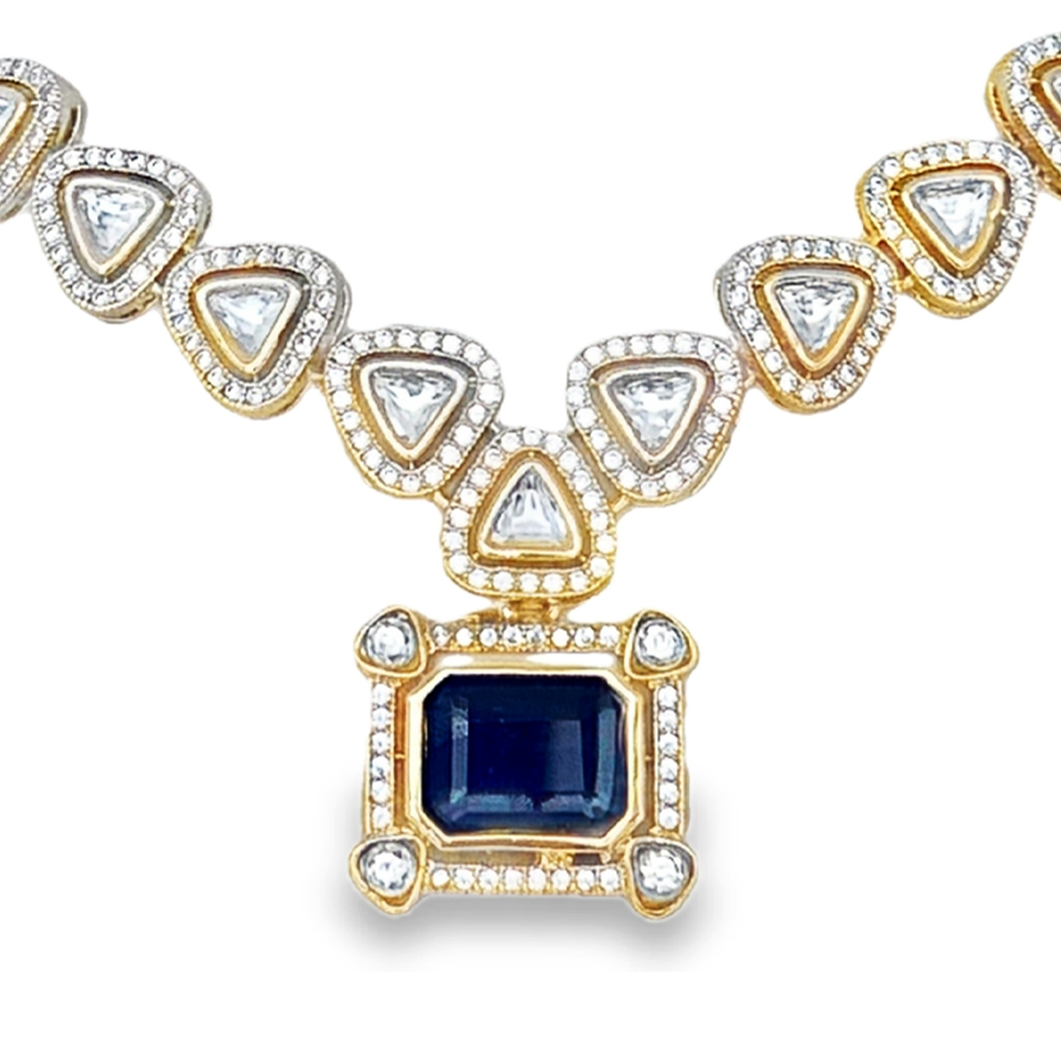 Mossanite Polki & Blue Sapphire Color Stone Studded Necklace Set