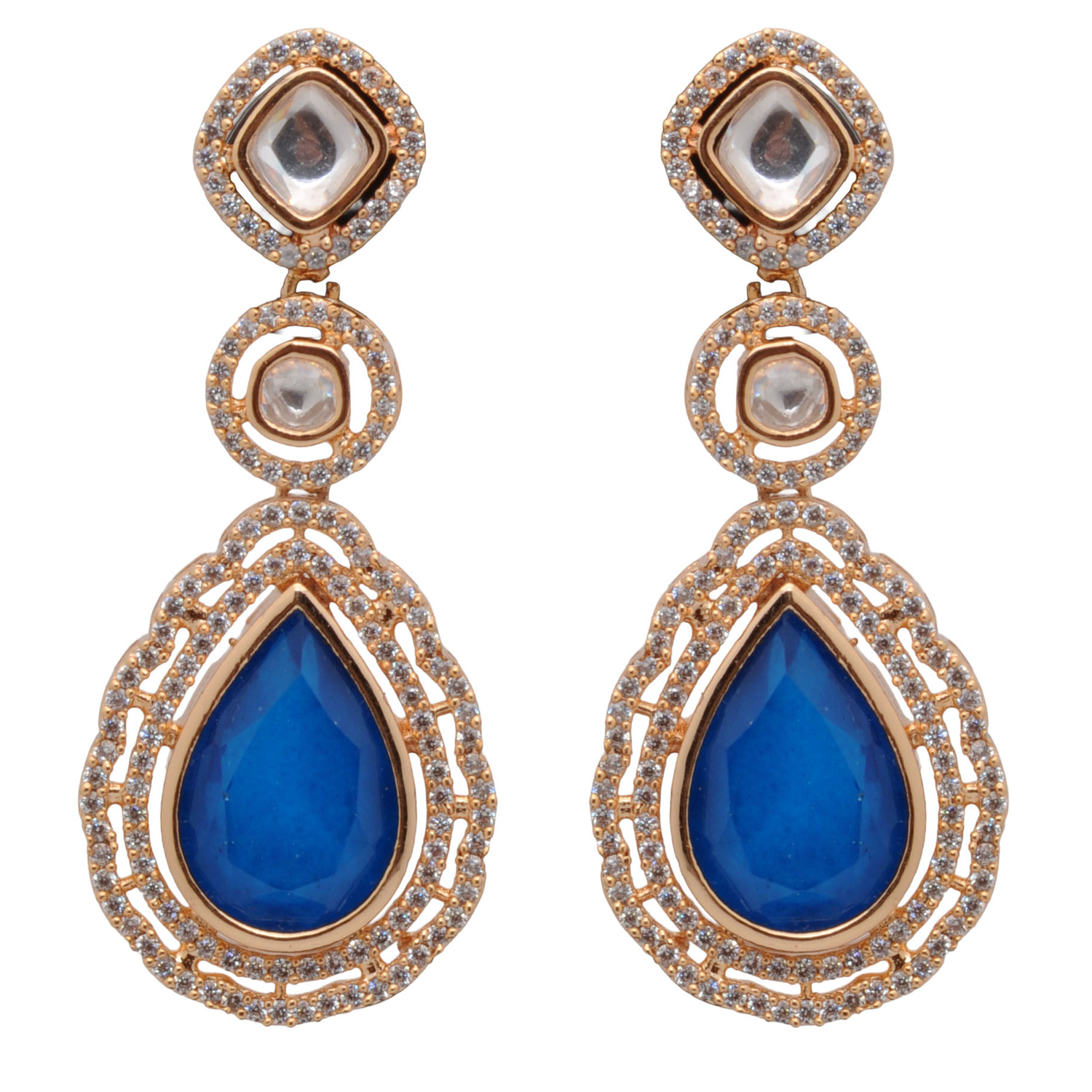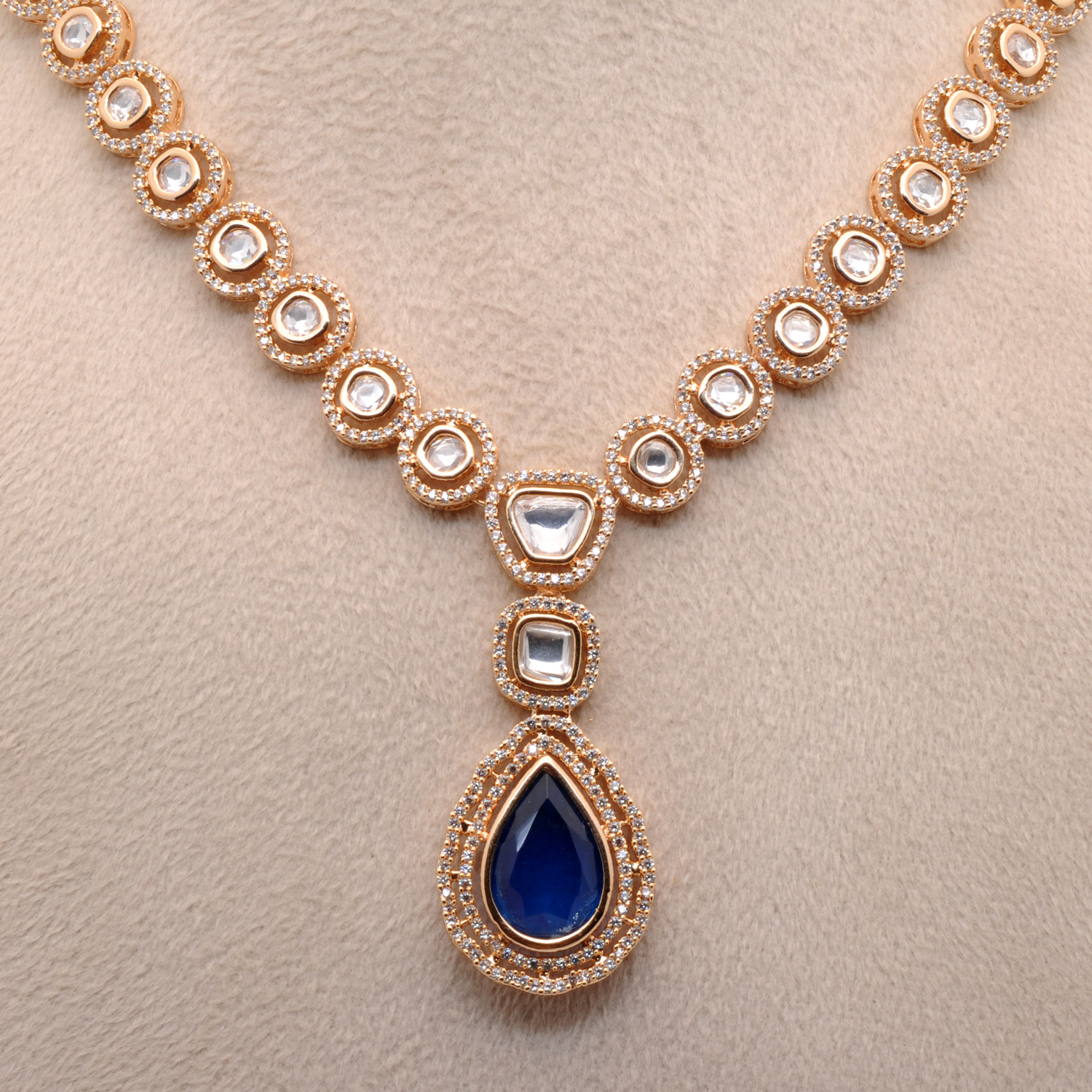 Mossanite Polki & Blue Sapphire Studded Necklace & Earring Set