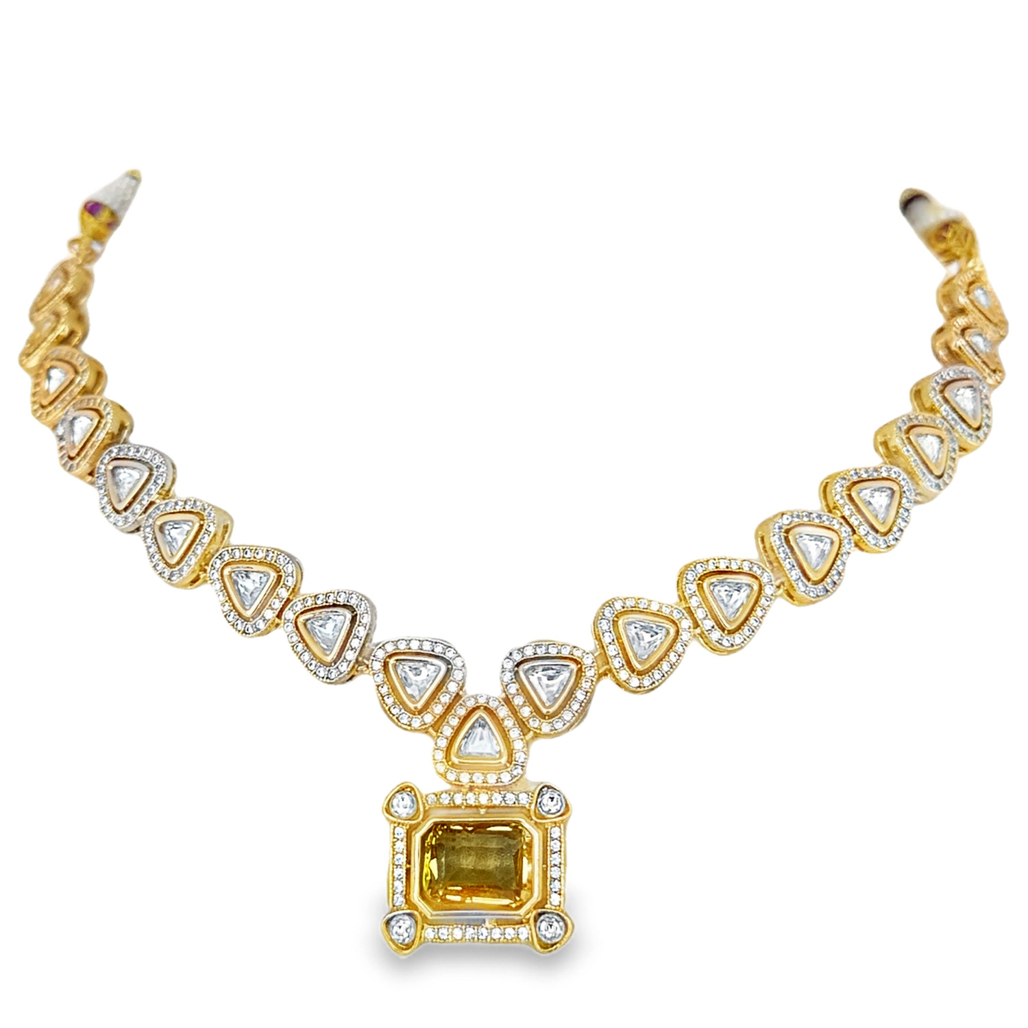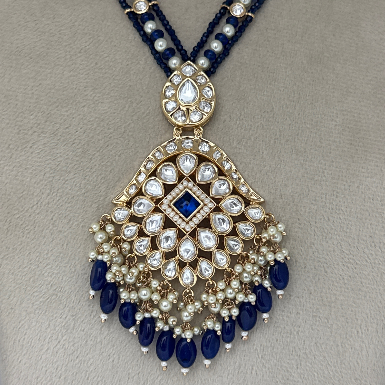 Mossanite Polki & Blue Sapphire Studded Wedding Wear Necklace Set