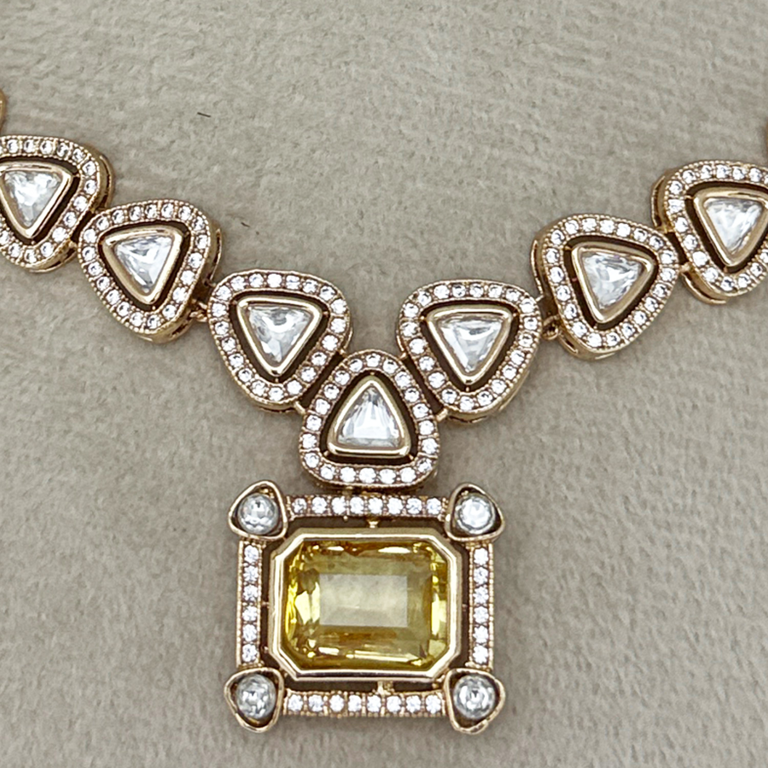 Mossanite Polki & Yellow Sapphire Color Stone Studded Necklace Set