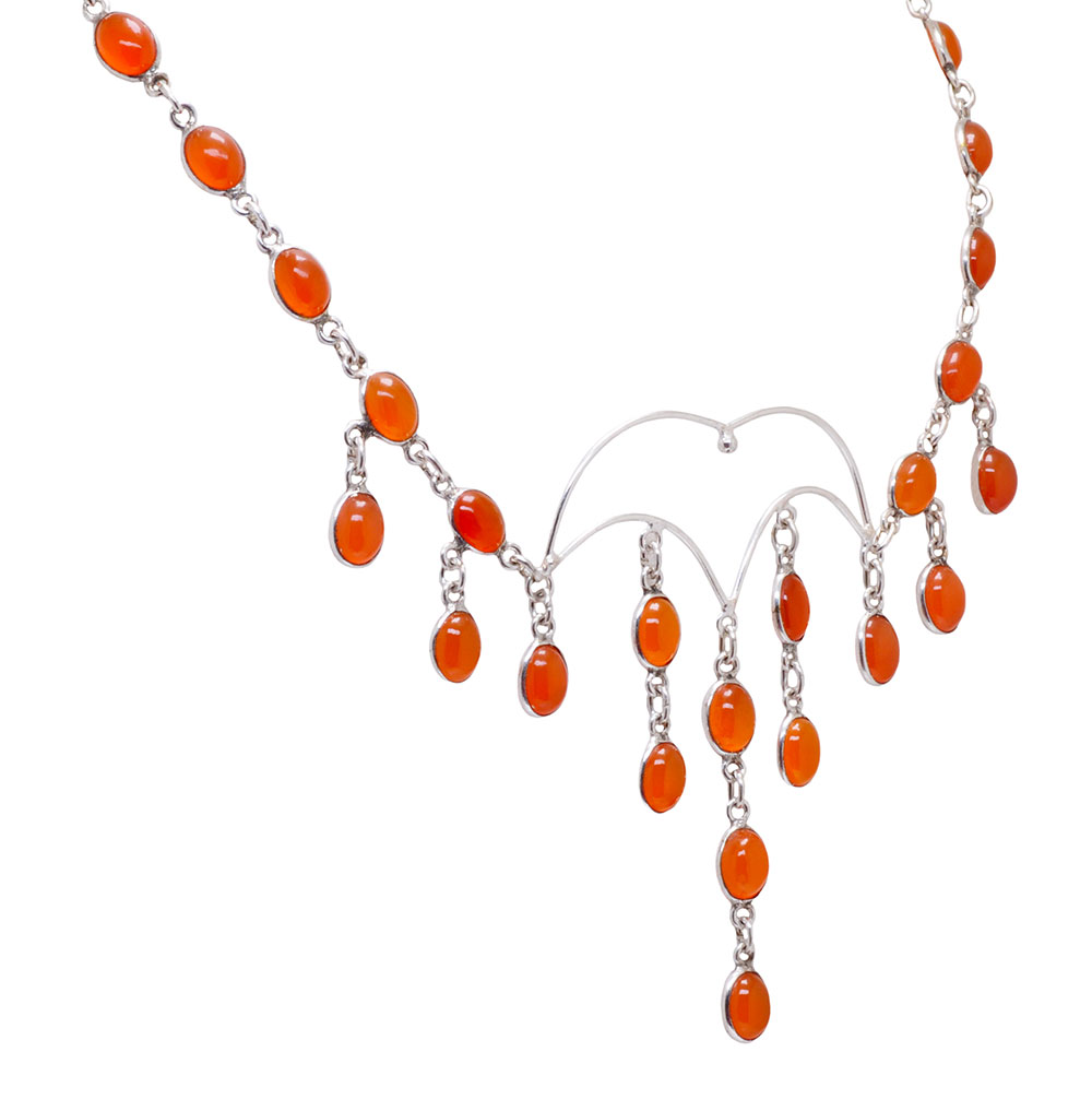 natural carnelian gemstone studded necklace WITH WHITE GOLD RHODIUM POLISH