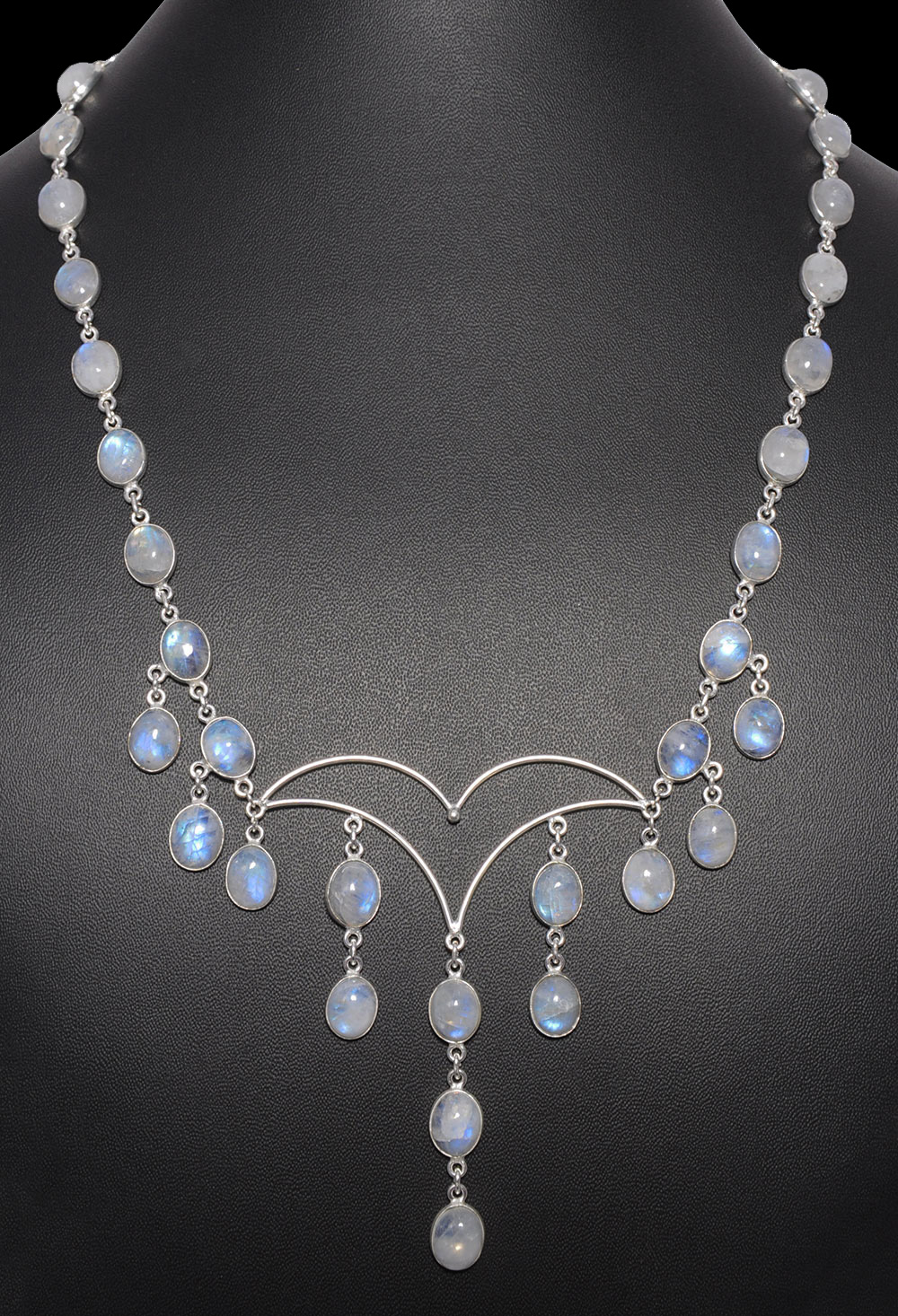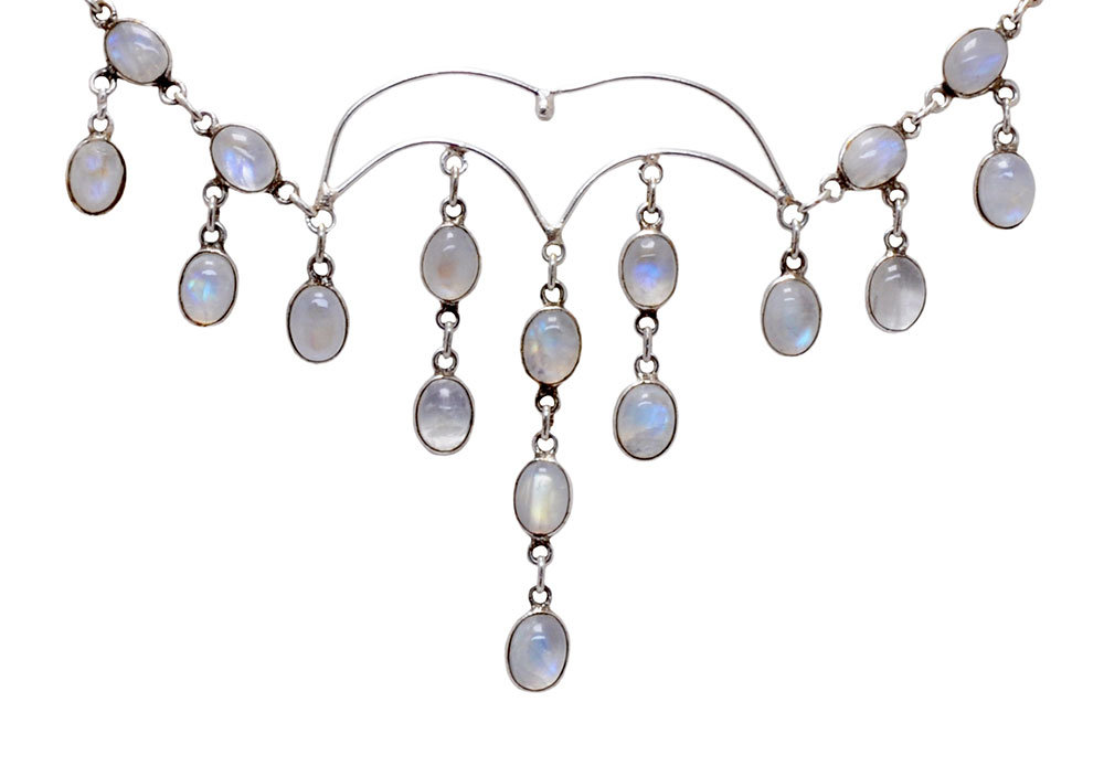 natural rainbow moonstone gemstone studded necklace WITH WHITE GOLD RHODIUM POLISH