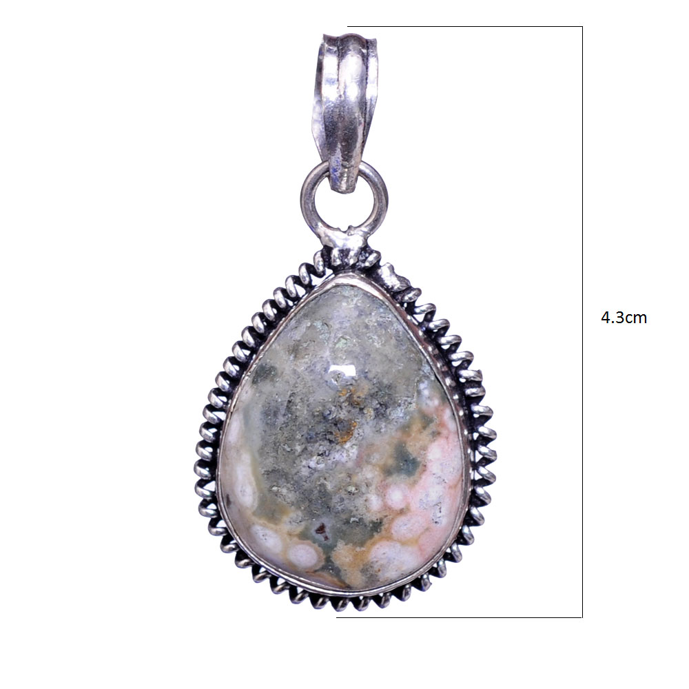 ocean jasper gemstone studded handmade pendant in .925 silver overlay