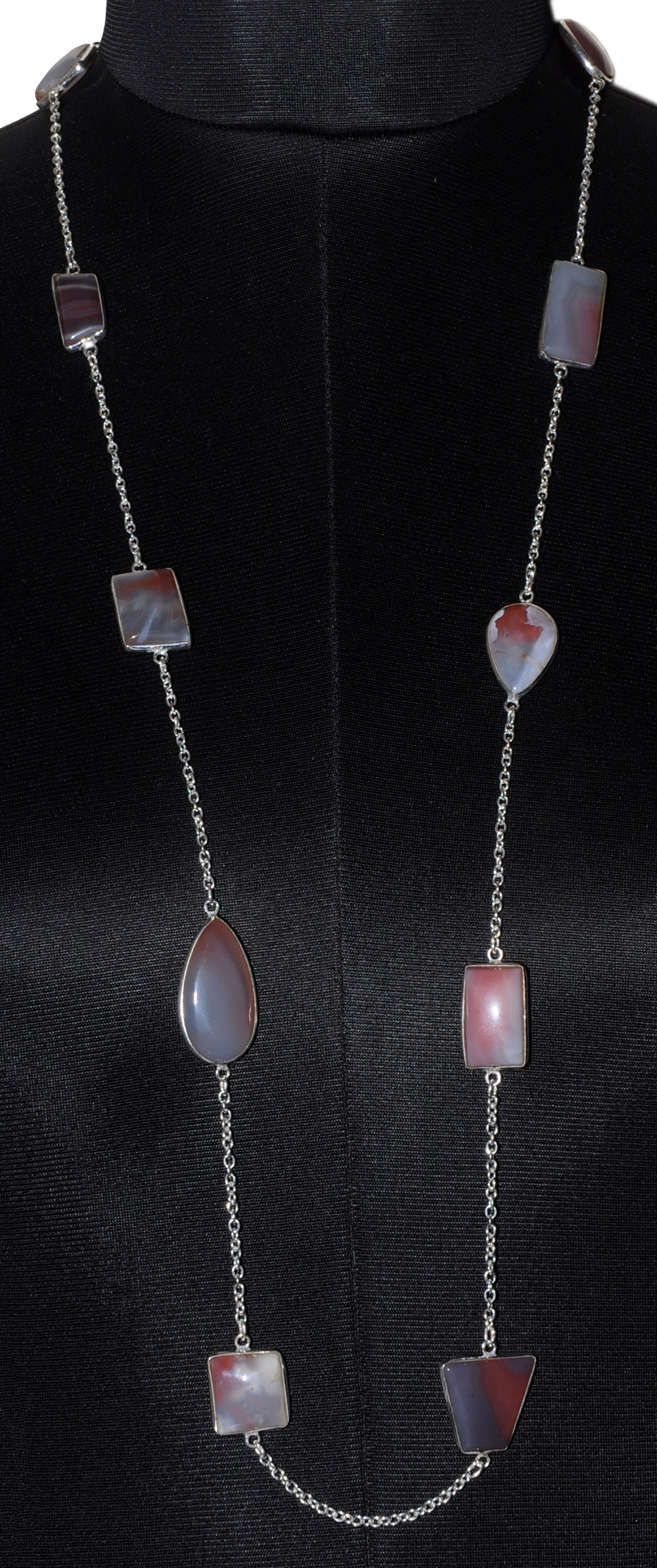 Onyx Gemstone Studded Chain In . Sterling Silver Overlay