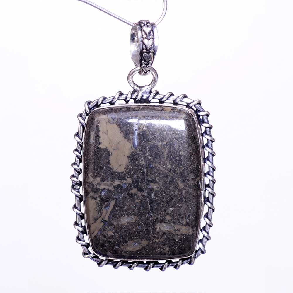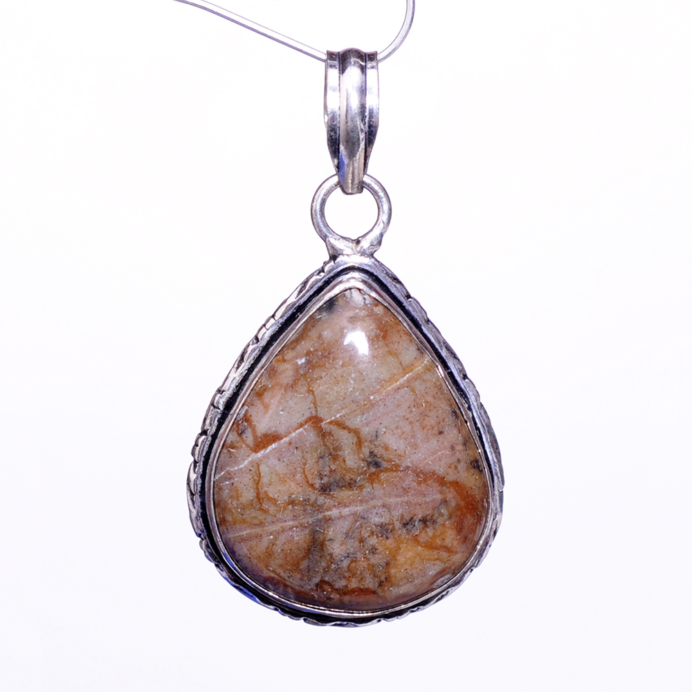 oolitic jasper 925 sterling silver overlay pendant 53×26 mm