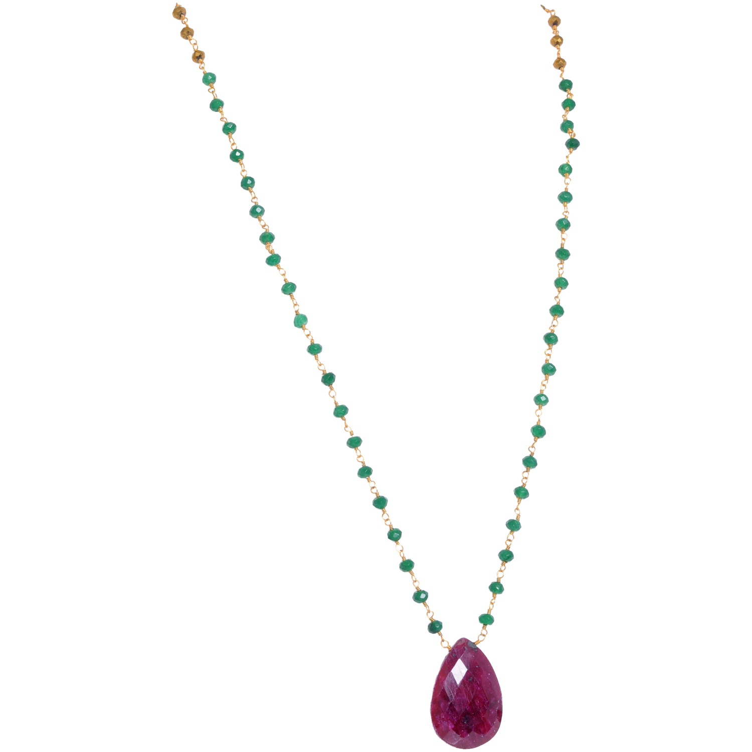 Pear Shape Ruby & Emerald Gemstone Beads Necklace NP1523