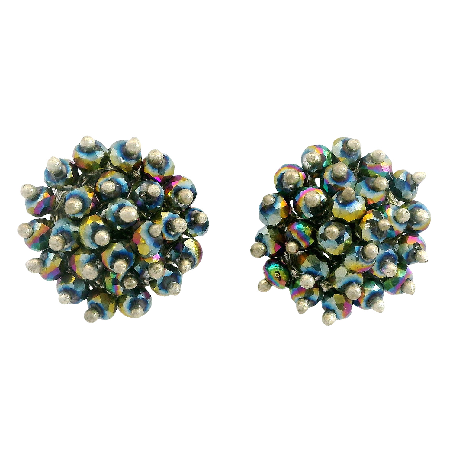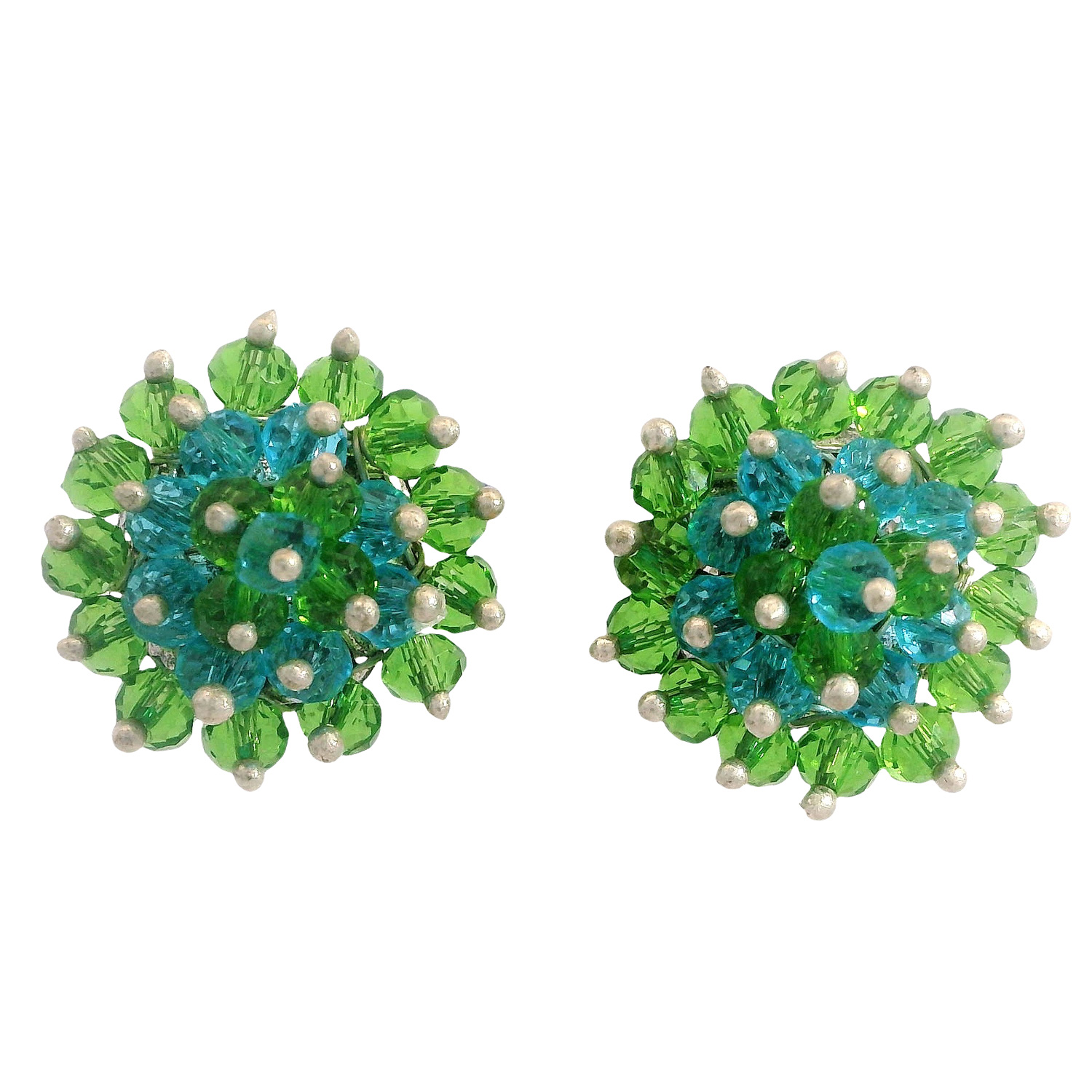 Peridot & Blue Topaz Beaded Stud Style Earrings