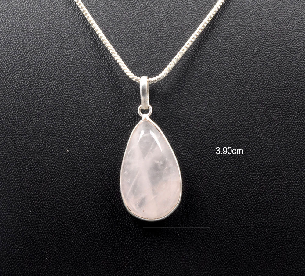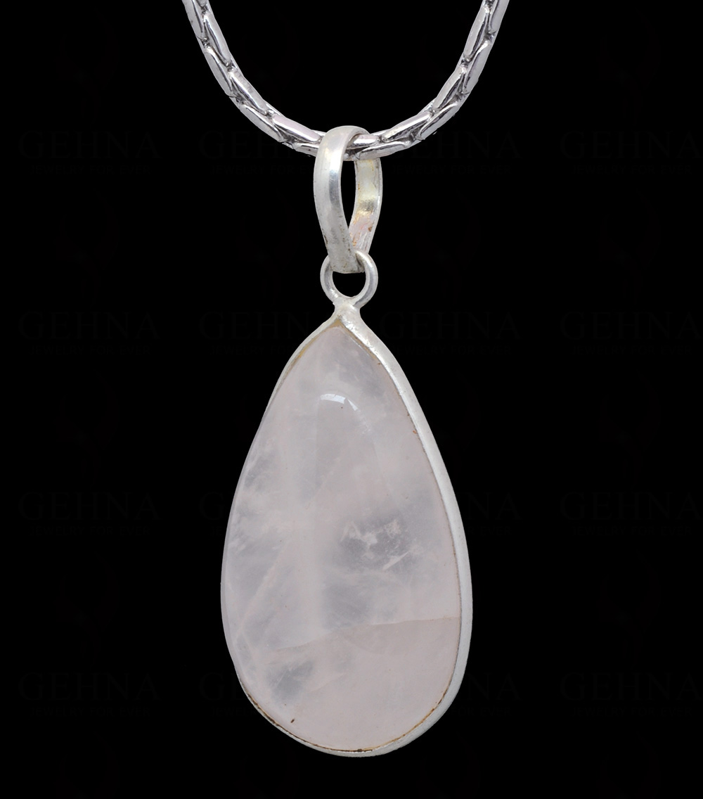 This Gehna Jaipur pink chalcedony pear shape pendant highlights a soft pastel gemstone set in silver-plated metal, ideal for delicate feminine styling.