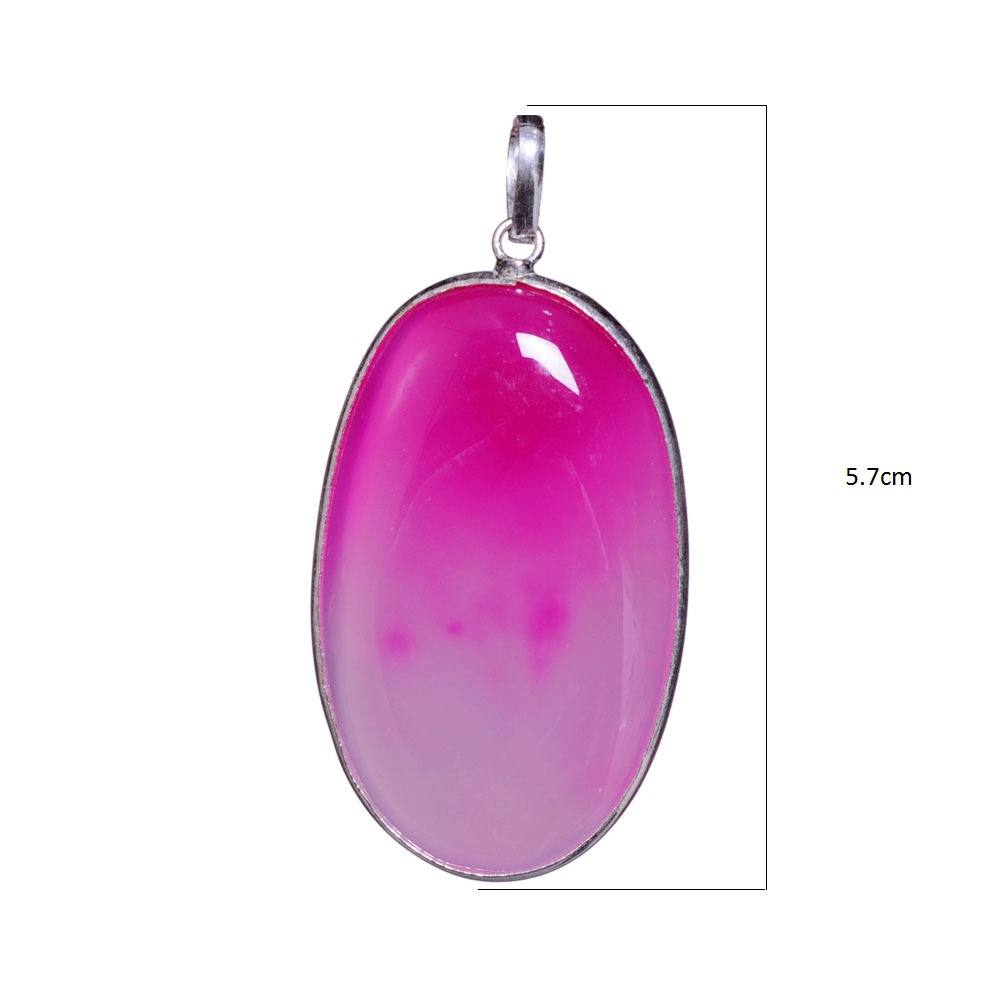 A vibrant pink dyed agate pendant in 925 sterling silver overlay, measuring 57 x 28 mm. Perfect for adding a bold and colorful touch to your jewelry collection.