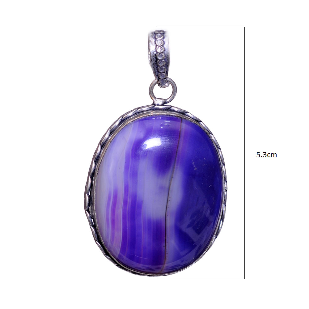 This Gehna Jaipur Purple Lace Agate pendant, set in 925 sterling silver overlay, features elegant purple and cream tones. Measuring 53×31 mm, it’s ideal for women who appreciate sophisticated, nature-inspired designs.