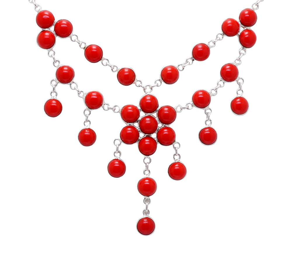 red coral stone studded necklace WITH WHITE GOLD RHODIUM POLISH