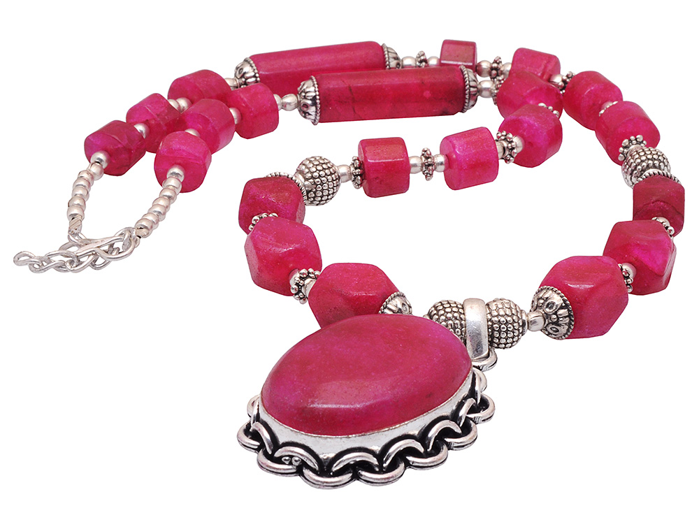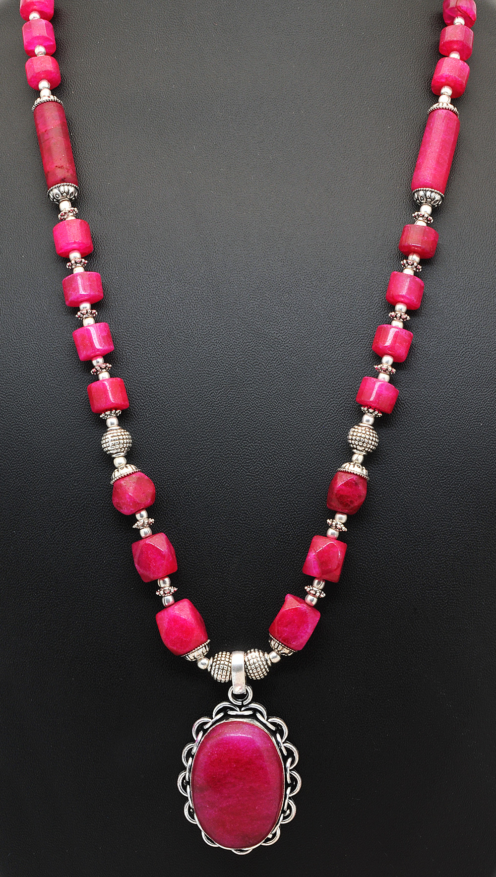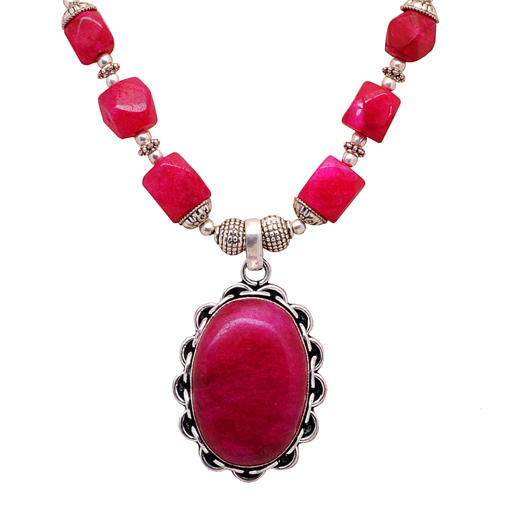 Red Jasper gemstone studded necklace & earring set WITH OXIDIZED RHODIUM POLISH