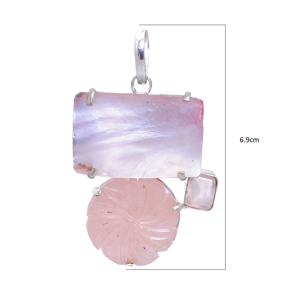Rose Quartz Gemstone pendant In .925 Silver Overlay