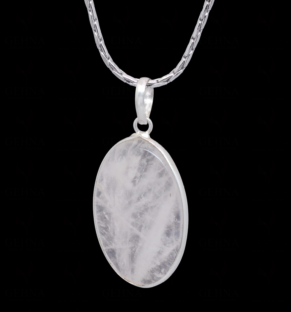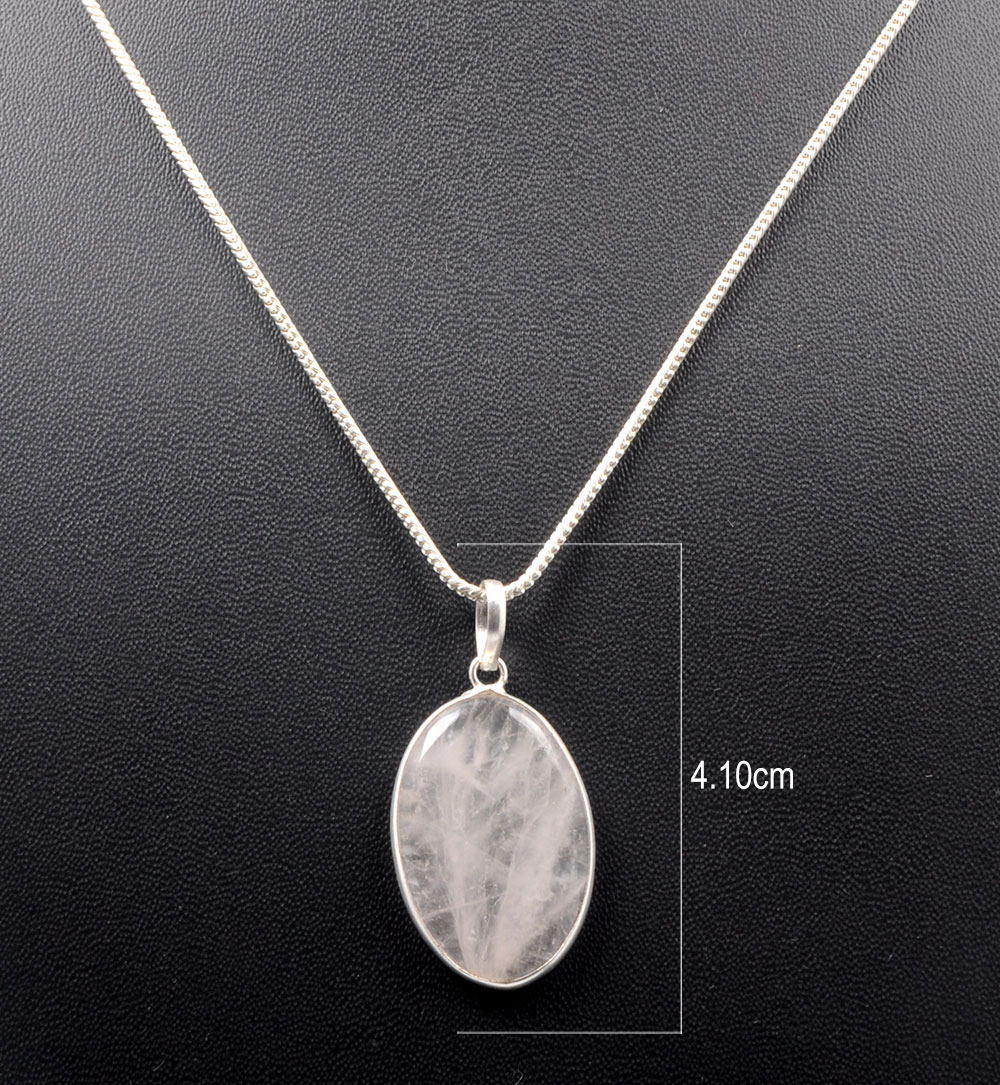 Rose Quartz Oval Shape Stone Studded Silver Plated Pendant GP4705
