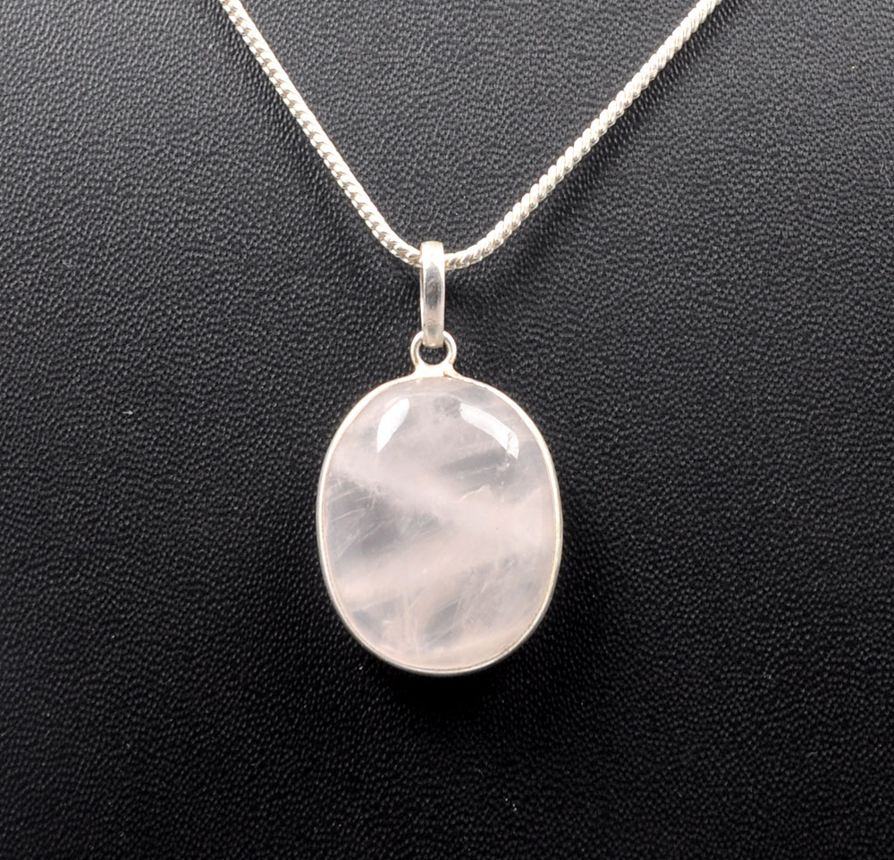 Rose Quartz Oval Shape Stone Studded Silver Plated Pendant GP4791