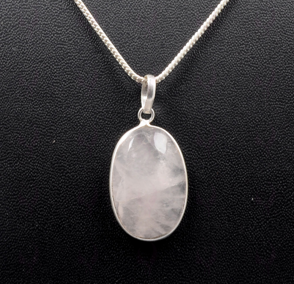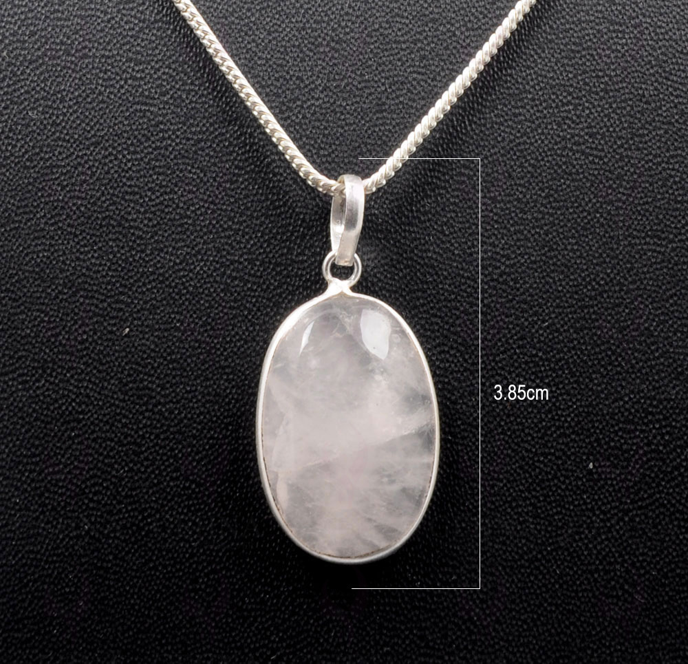 Rose Quartz Oval Shape Stone Studded Silver Plated Pendant GP4803