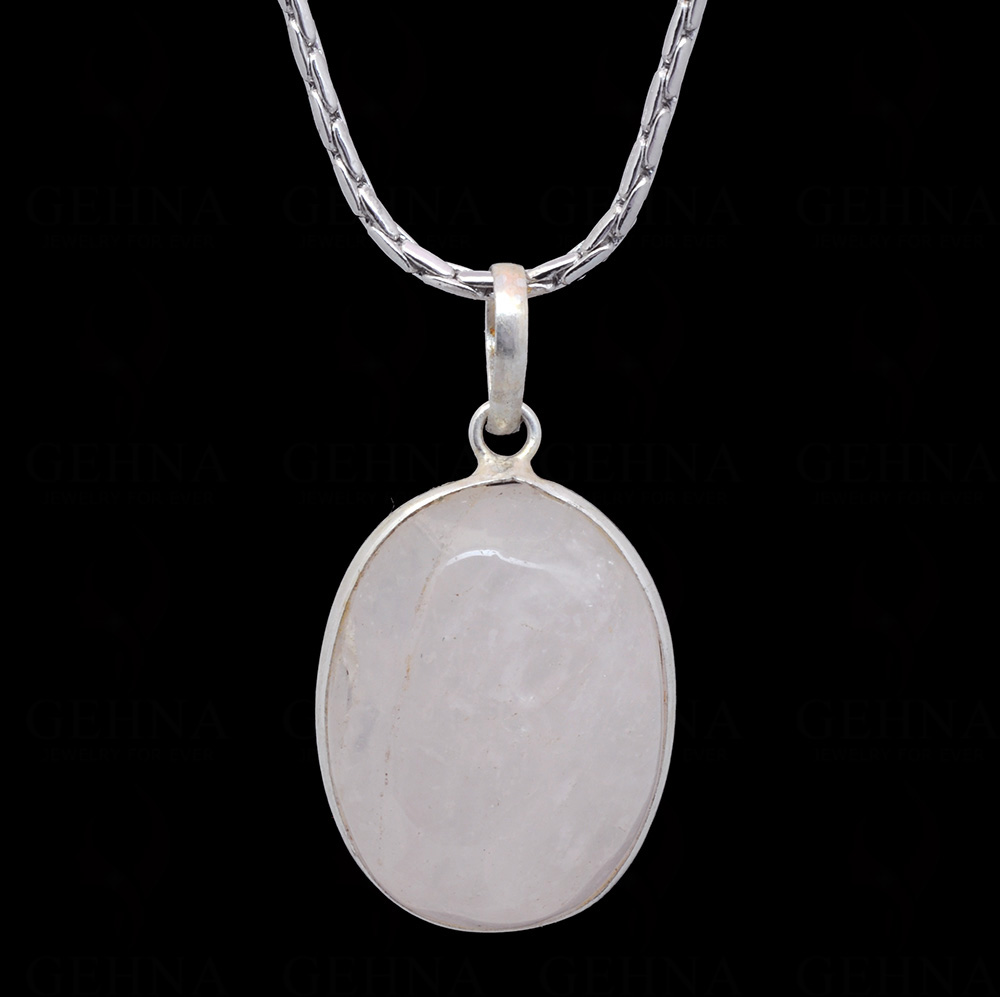 Rose Quartz Oval Shape Stone Studded Silver Plated Pendant GP4897