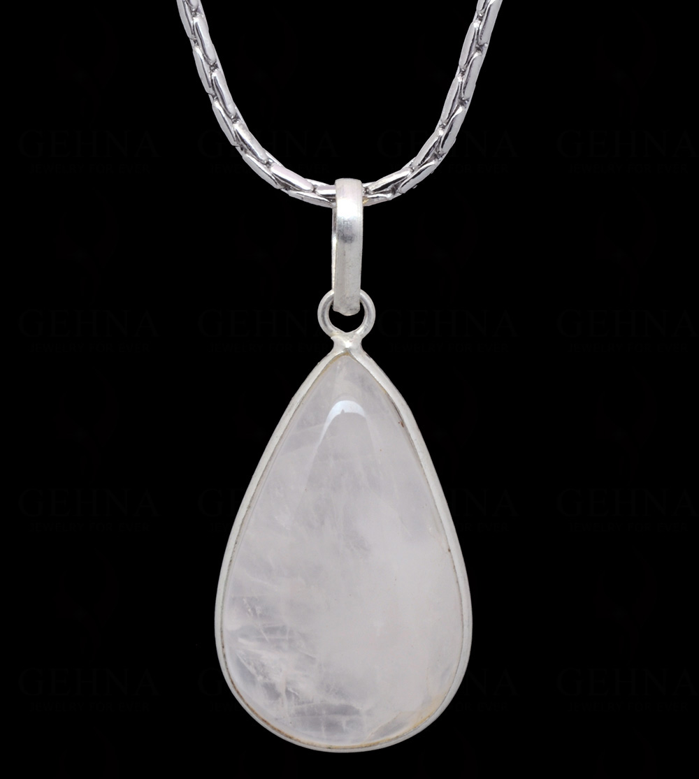 Rose Quartz Pear Shape Stone Studded Silver Plated Pendant GP4850