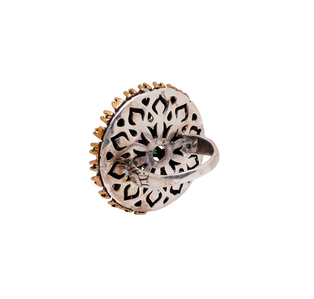 RUBY EMERALD & TOPAZ GEMSTONE STUDDED COCKTAIL RING IN SILVER