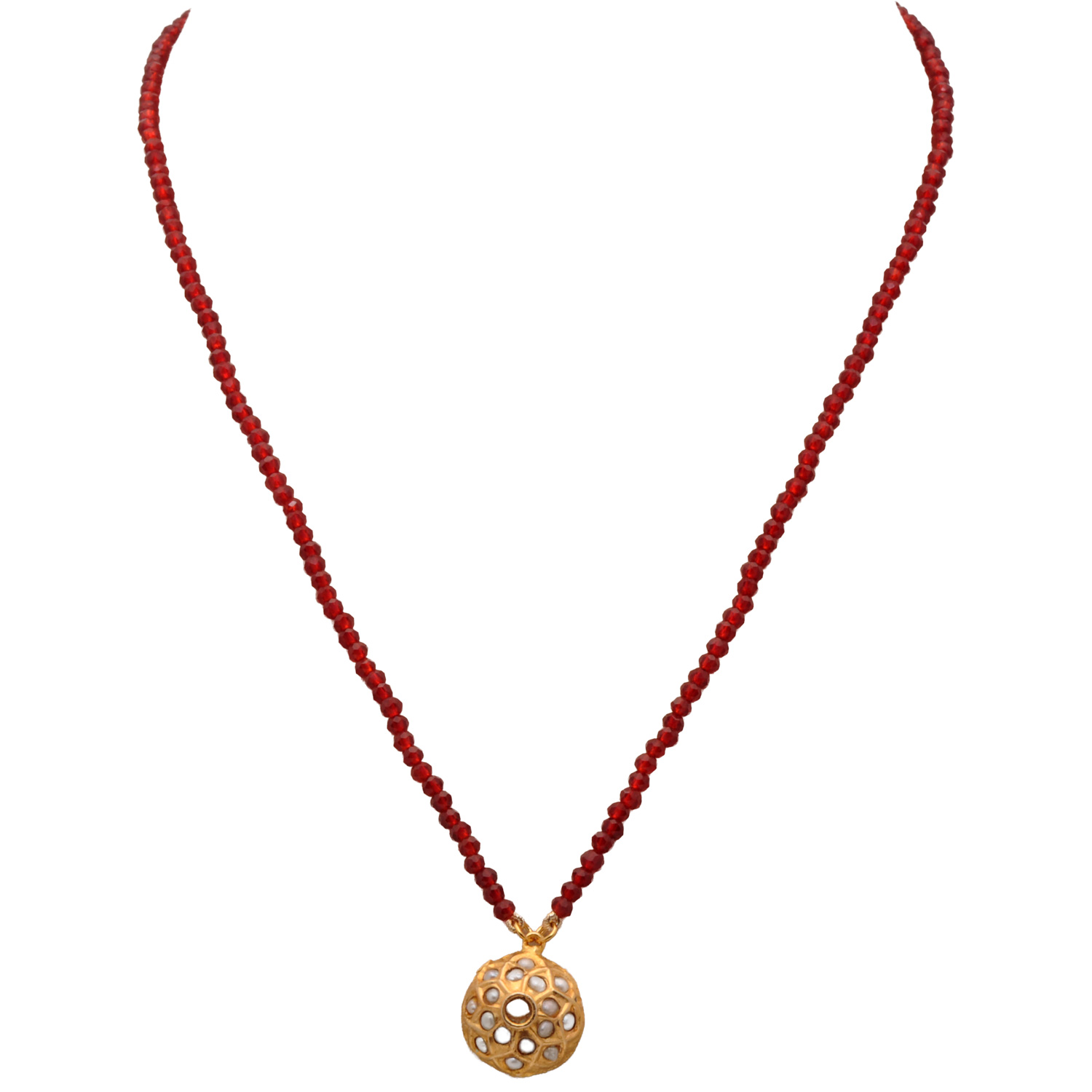 Ruby & pearl gold tone jadau bead pendant necklace