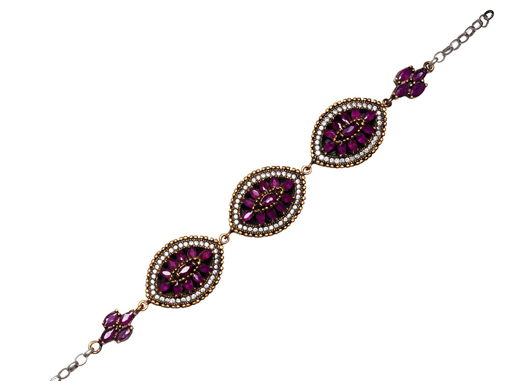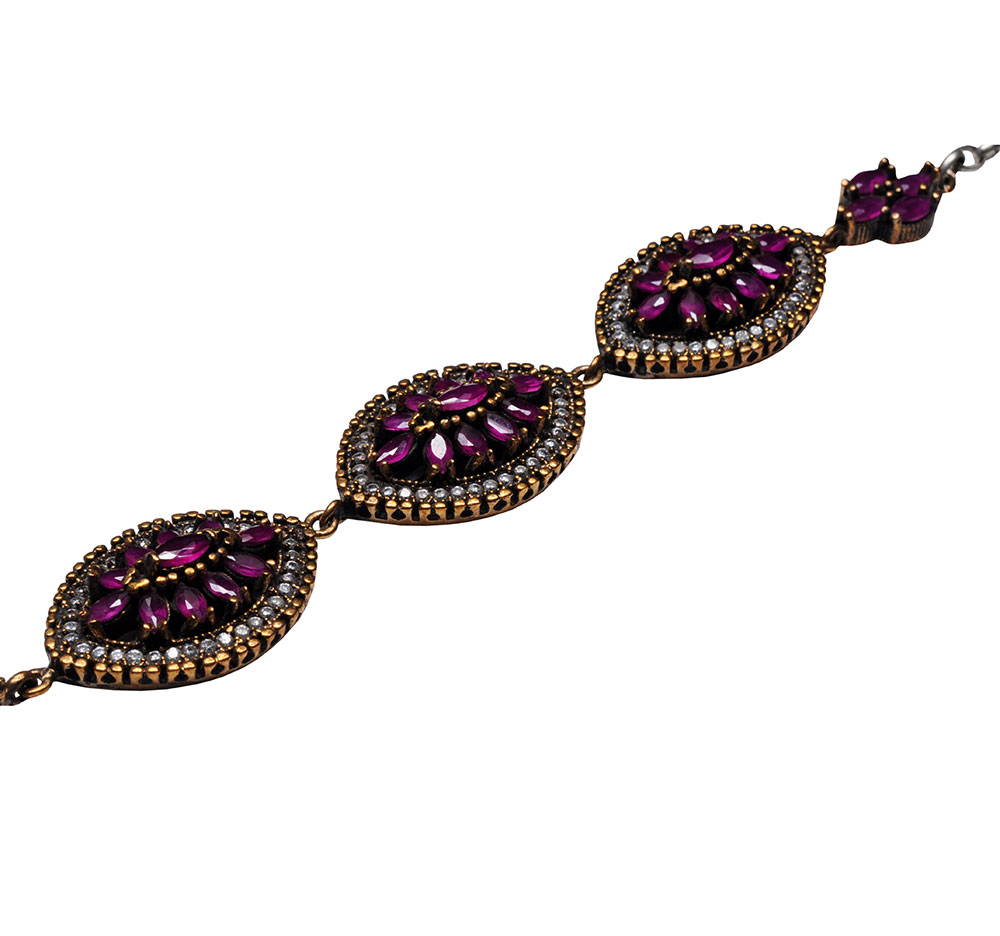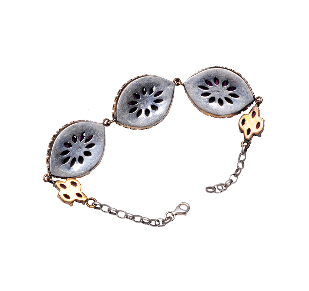 RUBY TOPAZ GEMSTONE STUDDED SILVER BRACELET