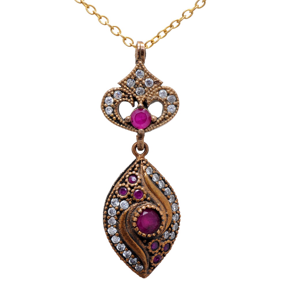 RUBY & TOPAZ GEMSTONE STUDDED SILVER PENDANT & EARRING SET