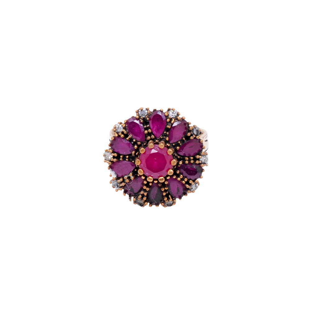 RUBY & TOPAZ GEMSTONE STUDDED SILVER RING EARRINGS & PENDANT