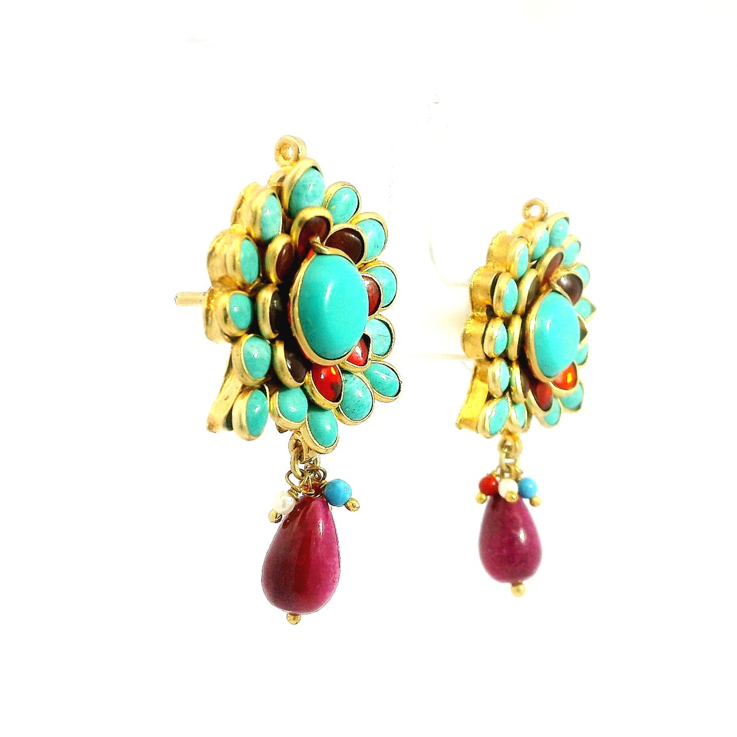 Ruby & Turquoise Studded Pacchi Art Earrings
