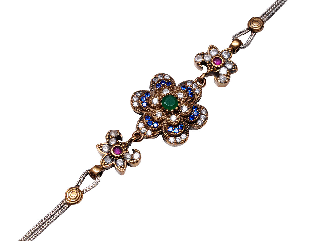 SAPPHIRE EMERALD RUBY GEMSTONE STUDDED SILVER BRACELET