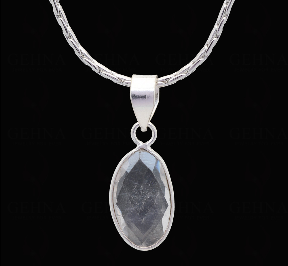 Gehna Jaipur sapphire oval shaped gemstone studded silver pendant showcases rich blue tones with classic elegance. Perfect for special occasions and refined daily wear.