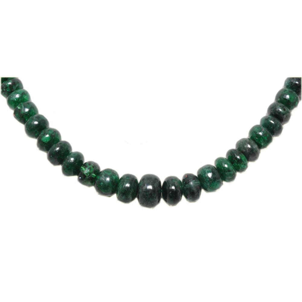 Single Line 253 Carats Emerald Gemstone Cabochon Beads Necklace