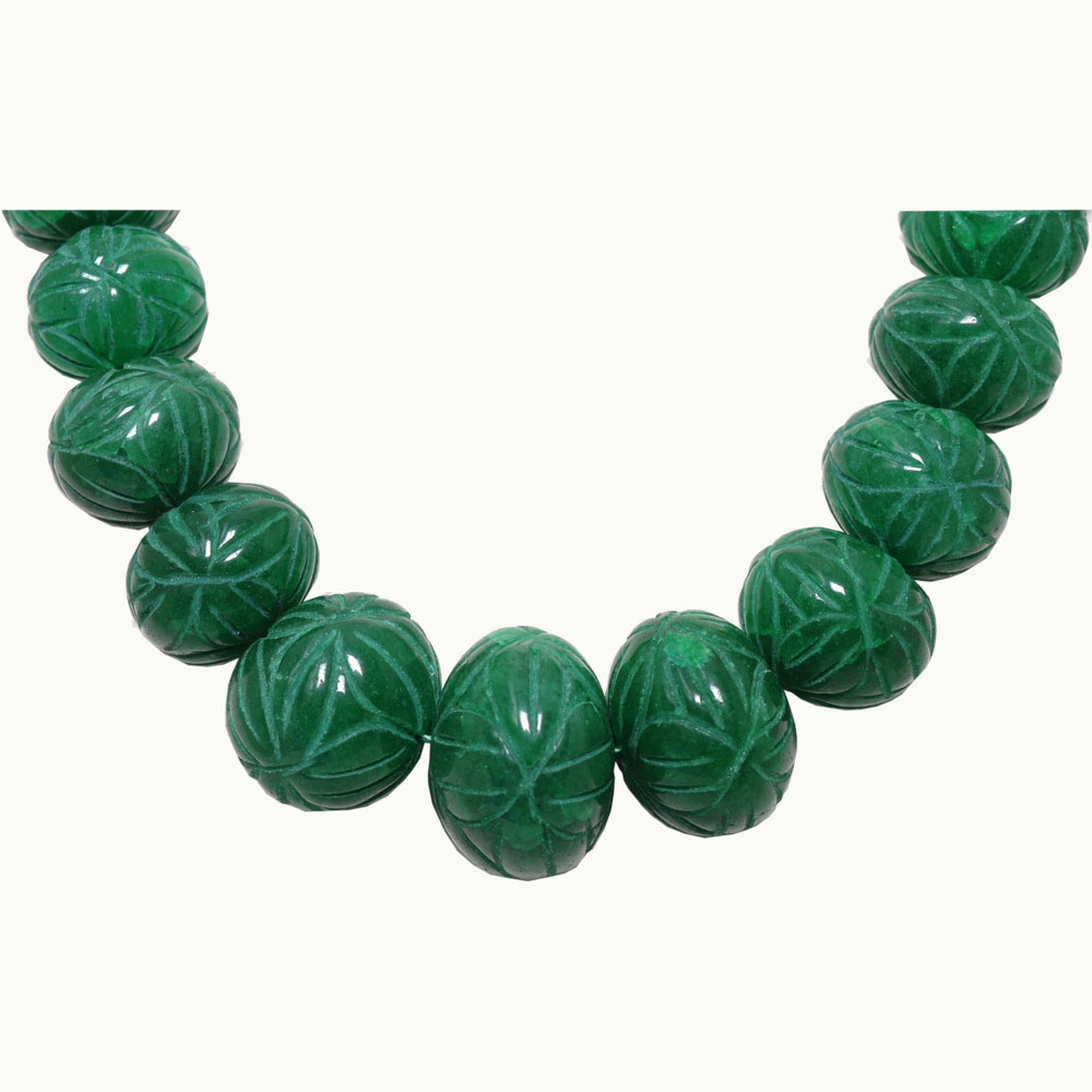 Gehna Jaipur’s Single Line 968 Carats Emerald Cabochon Beads Necklace offers a striking blend of elegance and luxury. Perfect for girls and women, this necklace features vibrant cabochon emeralds for a sophisticated look.