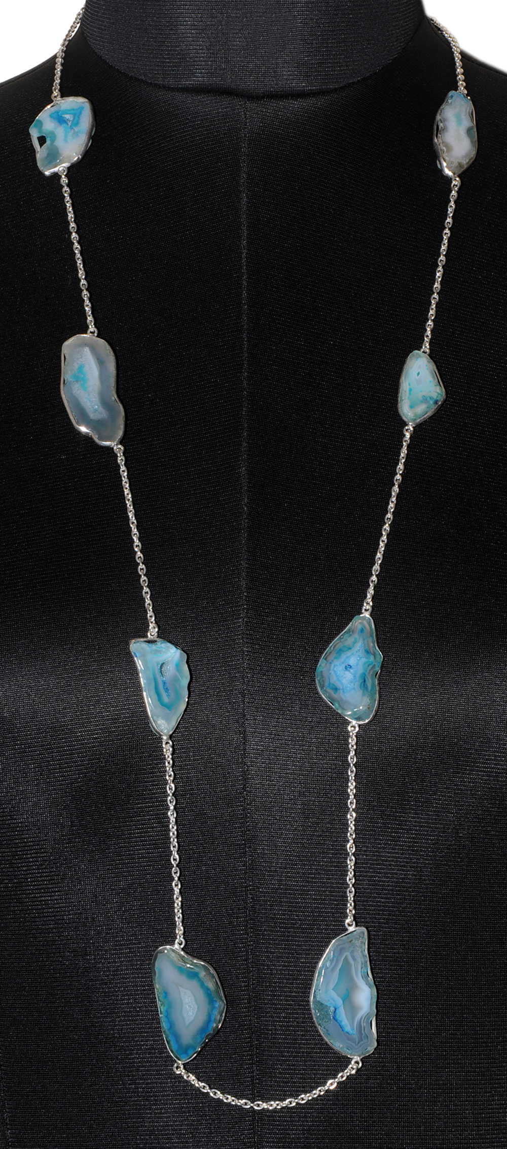 Sky Blue Agate Gemstone Studded Chain In . Sterling Silver Overlay