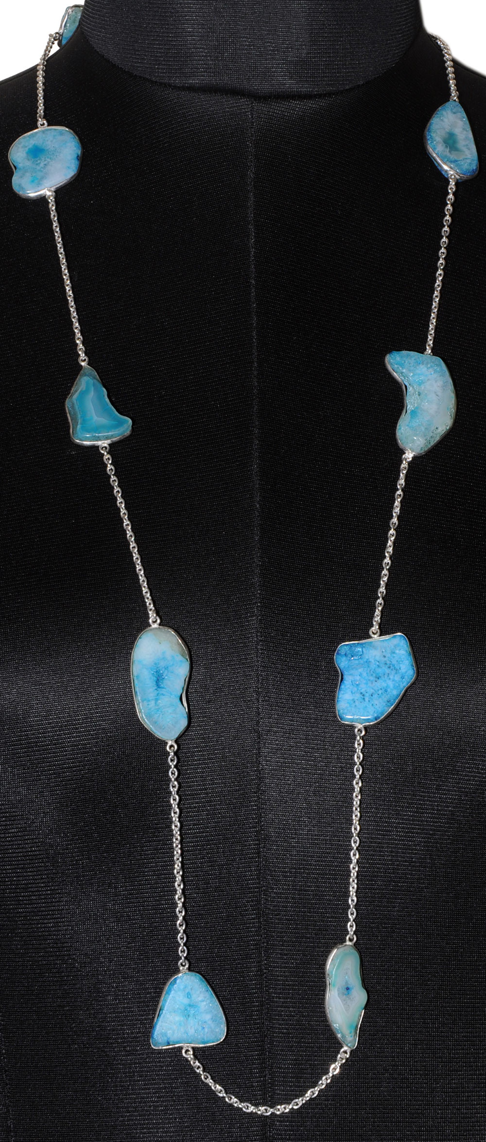 Sky Blue Agate Gemstone Studded Chain In . Sterling Silver Overlay WITH WHITE GOLD RHODIUM POLISH