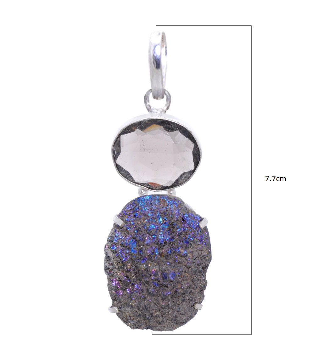 Gehna Jaipur Smokey & Blue Druzy gemstone pendant combines deep smoky tones with shimmering blue accents. A distinctive piece that adds dramatic elegance and artistic flair.