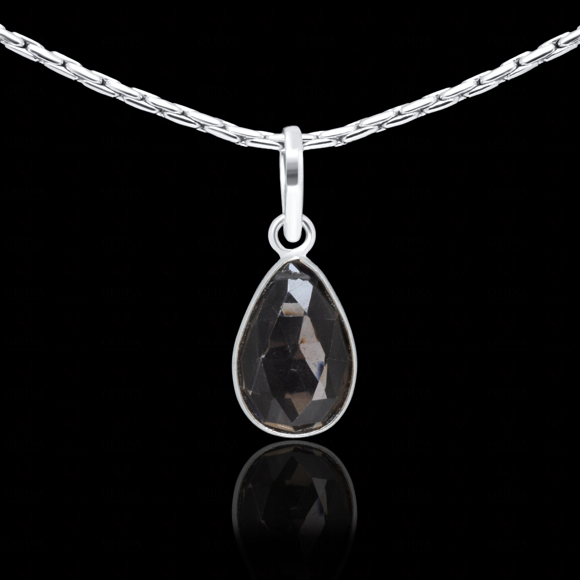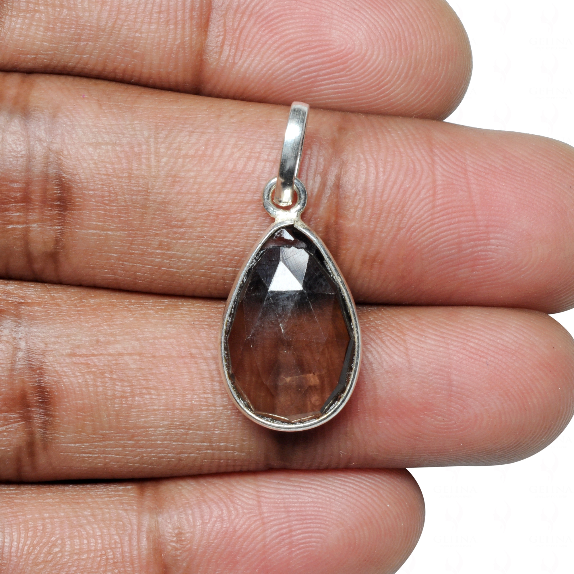 Smokey Pear Shape Gemstone Studded Silver Pendant – Gp5278