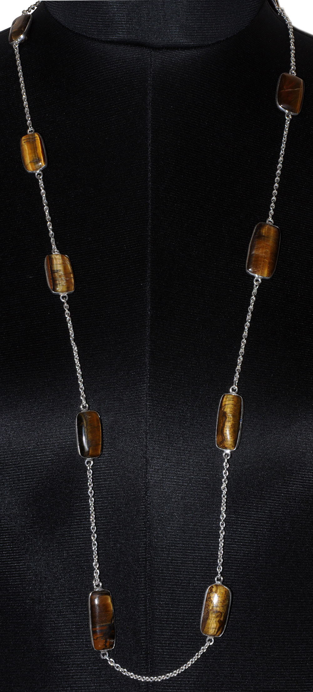 Tiger Eye Gemstone Studded Chain In . Sterling Silver Overlay