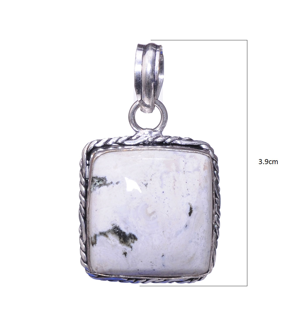 This Gehna Jaipur Tree Agate pendant in 925 sterling silver overlay features intricate, nature-inspired patterns. With its 39×24 mm size, it’s perfect for adding a touch of earthy elegance to any outfit.